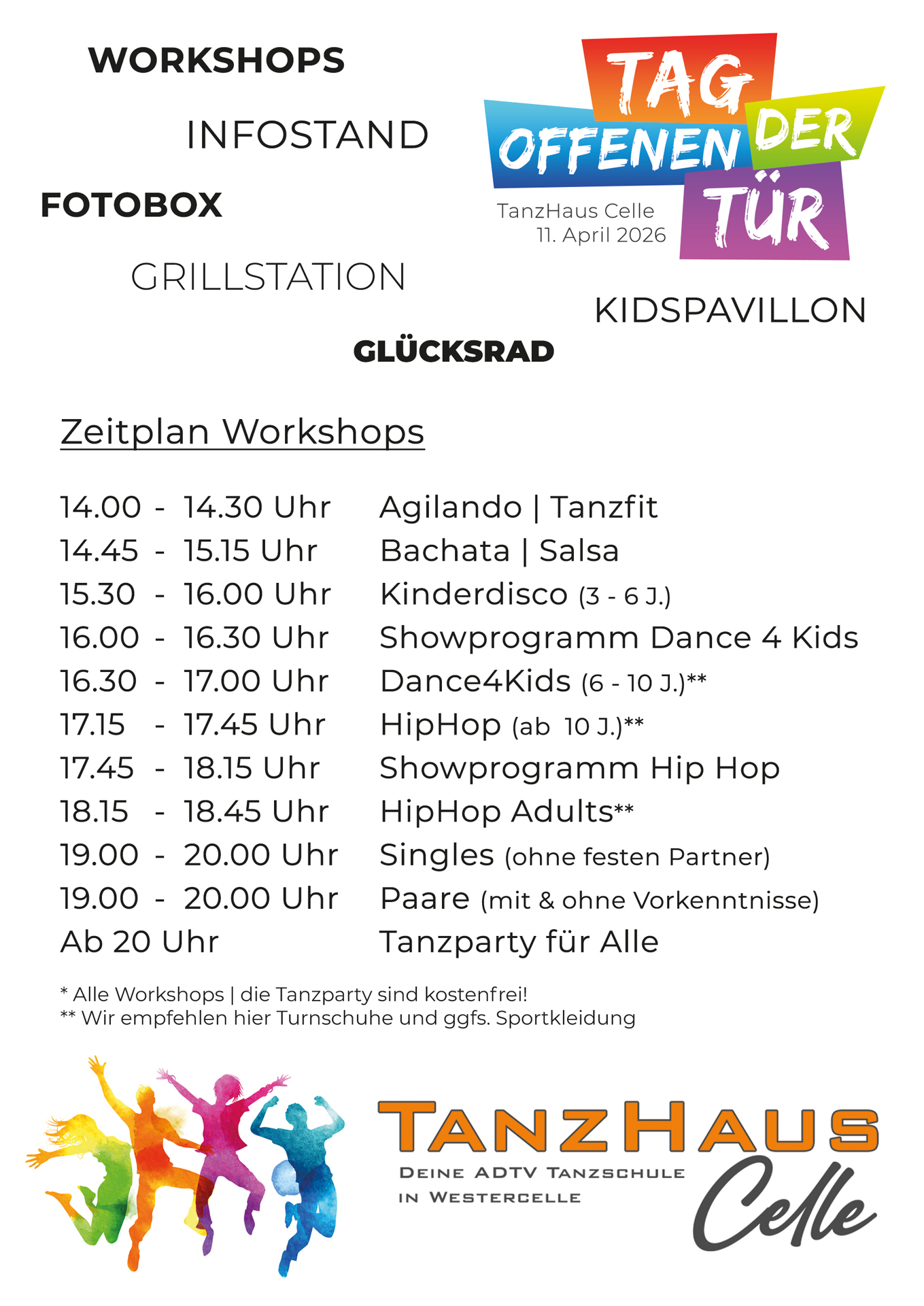 • Mitmach‑Workshops aus vielen Tanzbereichen